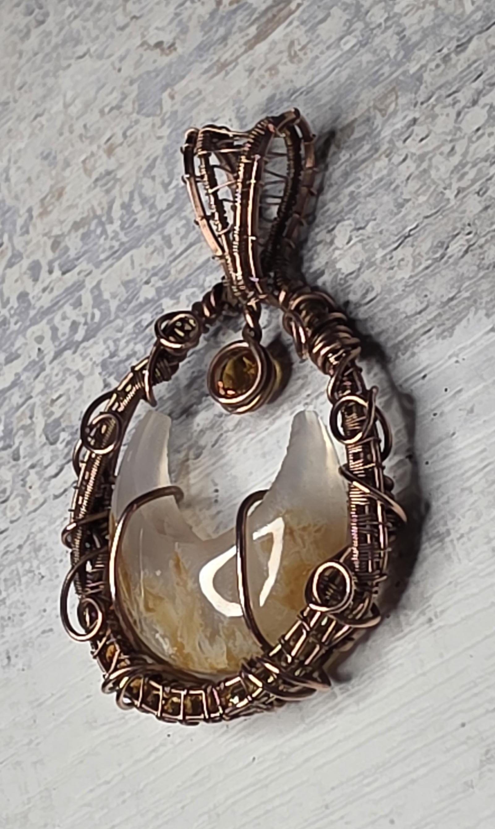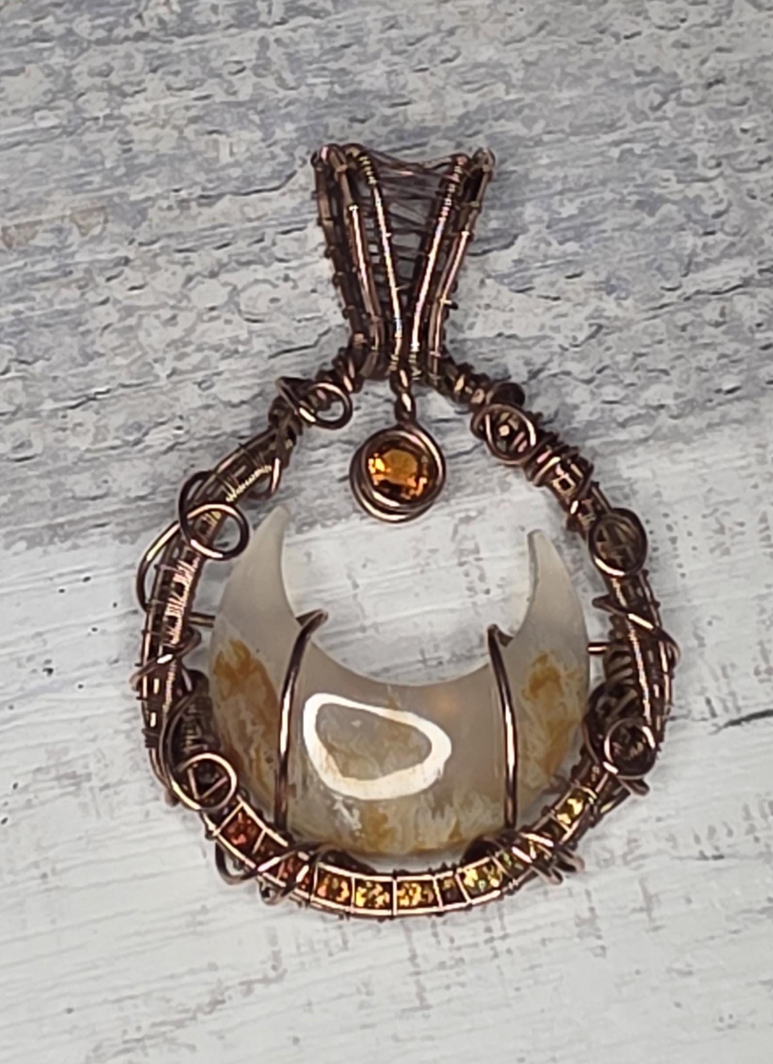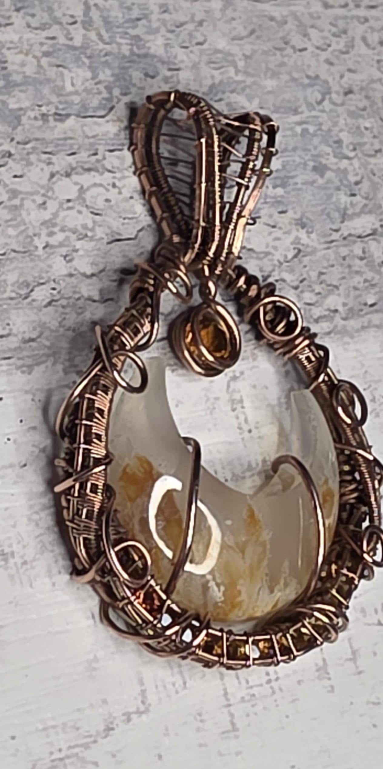 Plume Agate Copper Wrapped Pendant with multiple Citrine Accents.