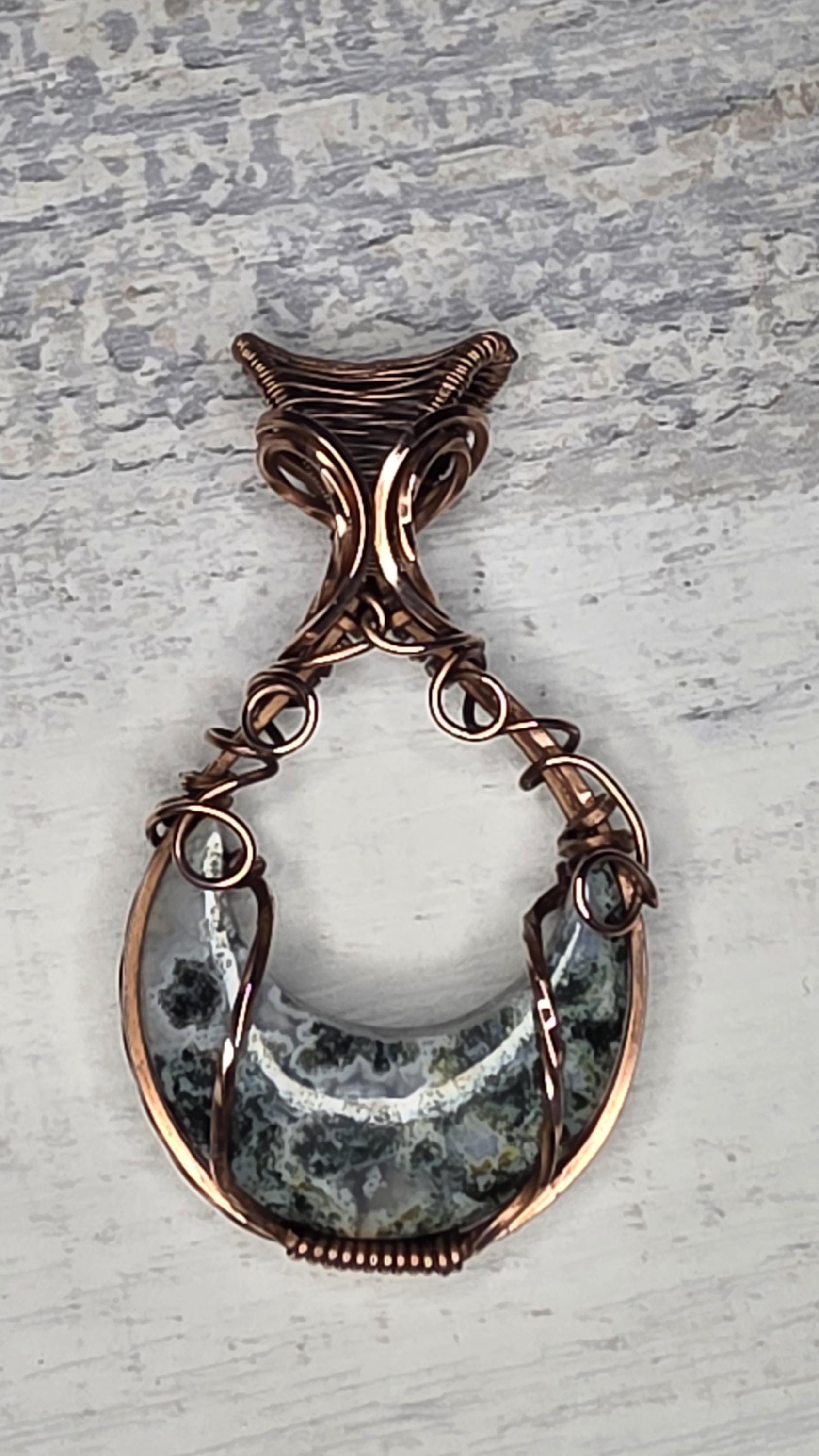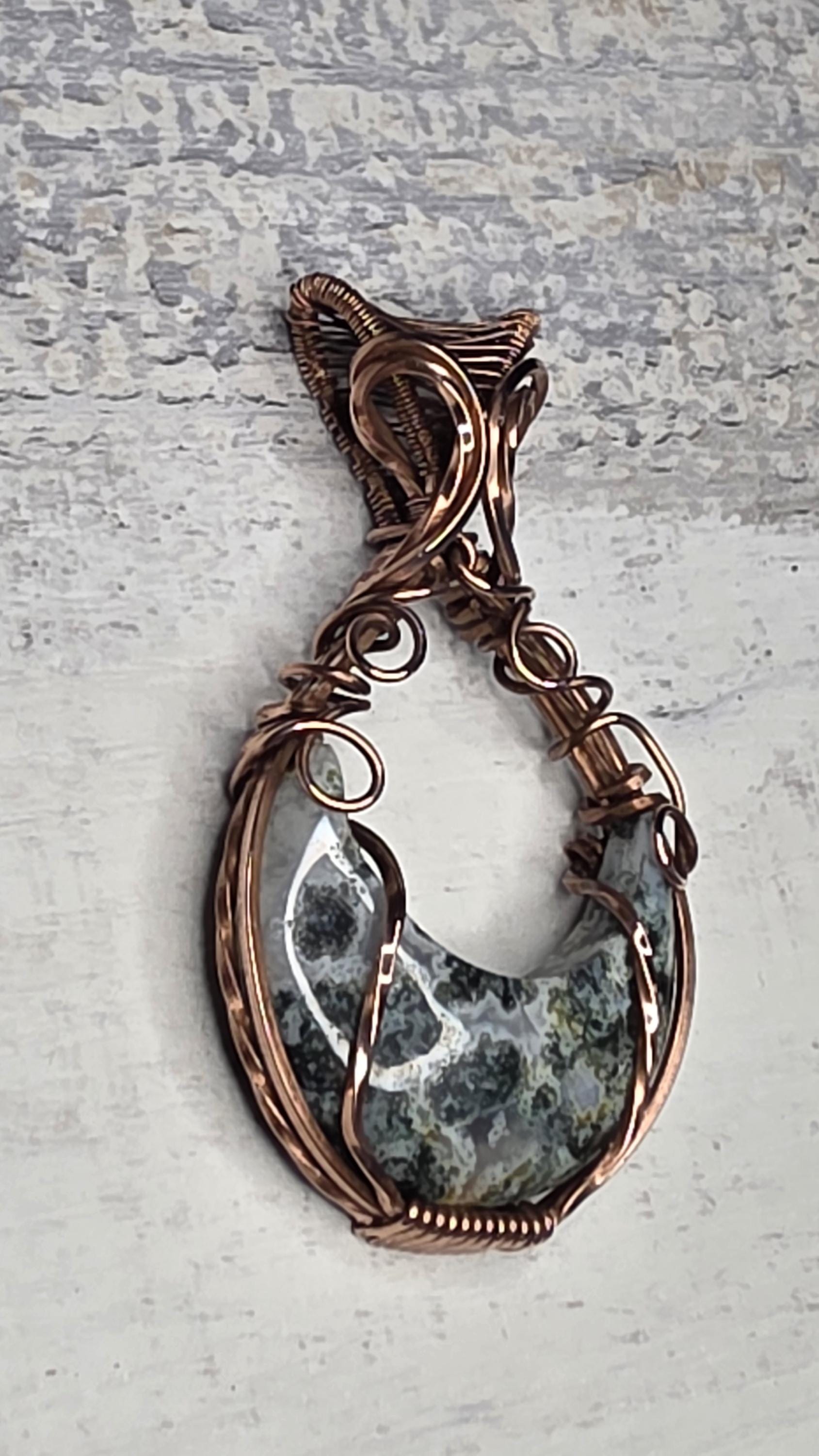 Moss Agate Copper Wrapped Pendant: