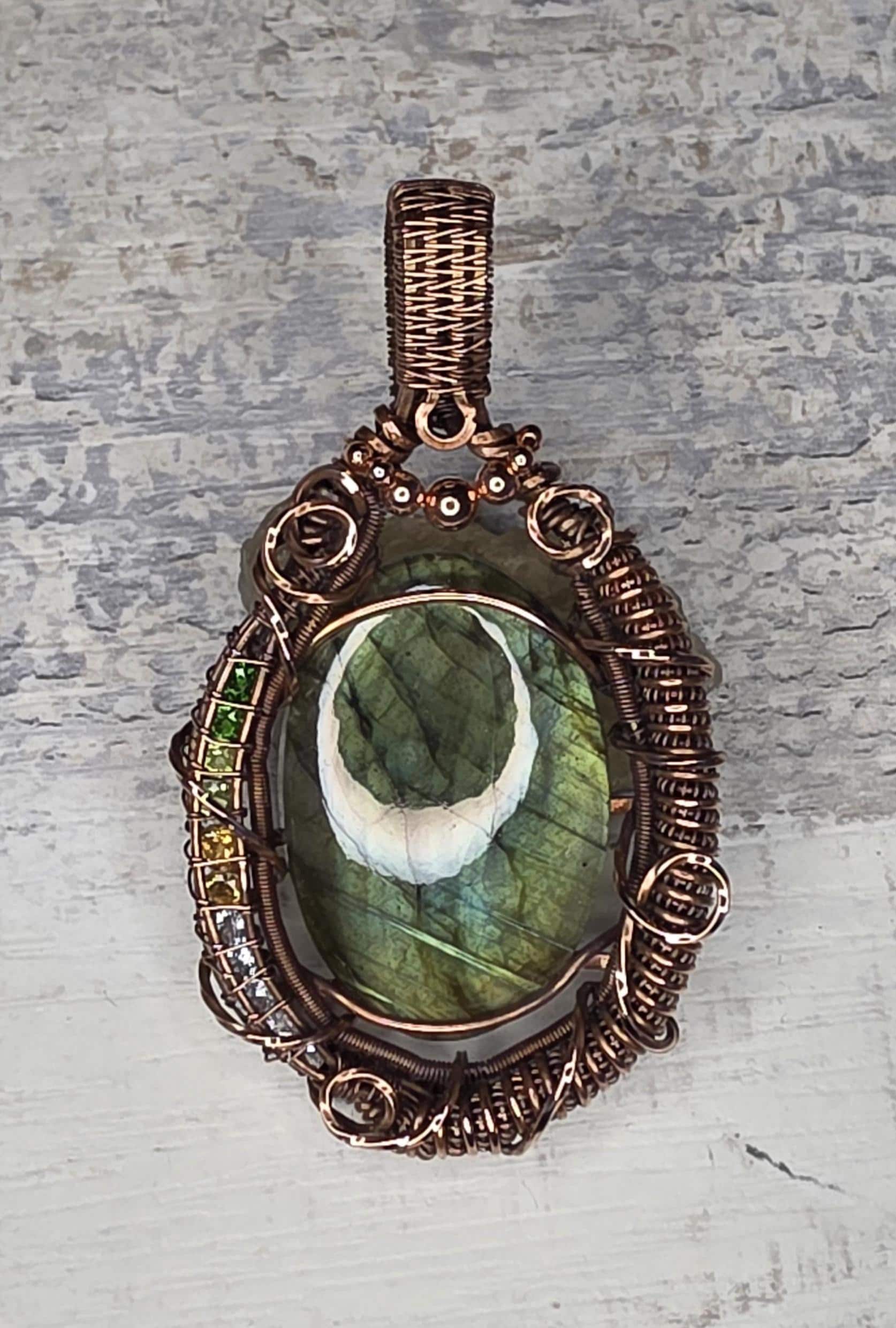 Labradorite Copper Pendant: Accented with Chrome Diopside, Peridot, Citrine & White Sapphire