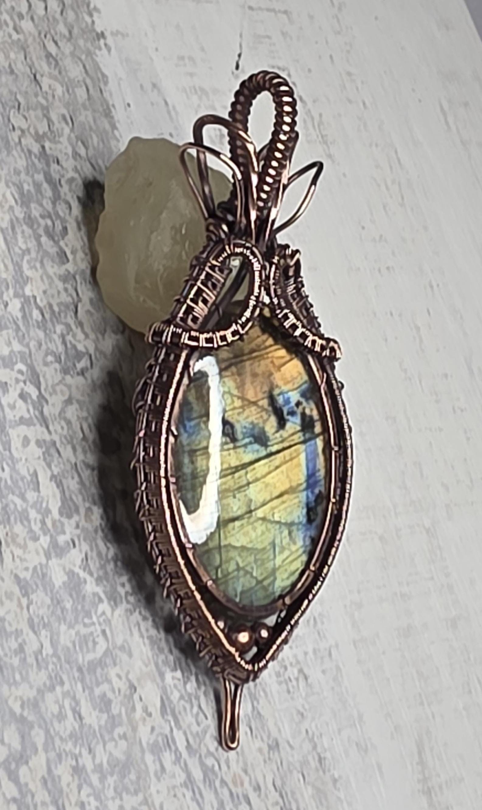 Hand Woven Copper Labradorite Pendant.